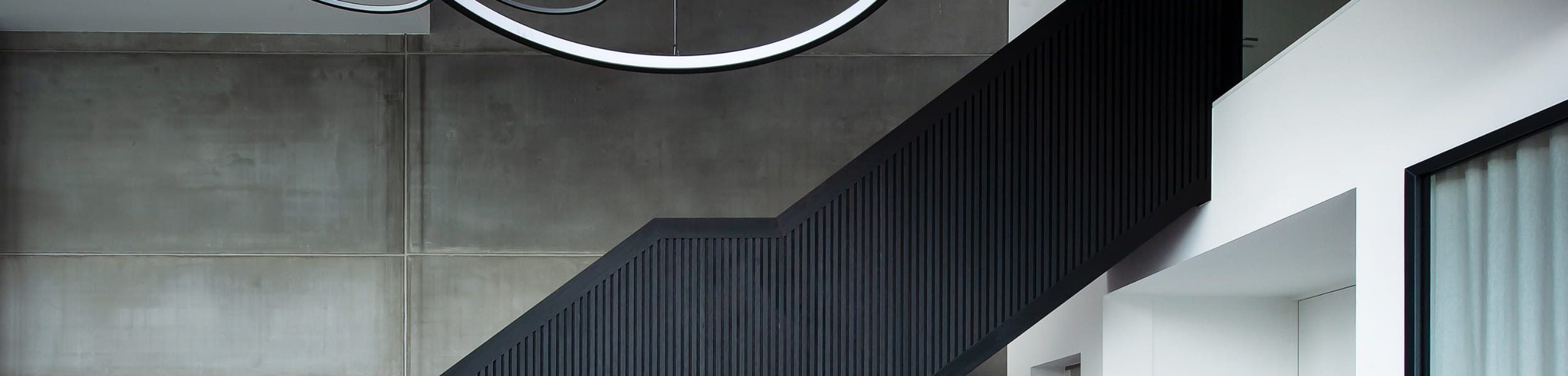In the entrance hall, it is impossible to take your eyes off the impressive staircase. It is clad in stylish black Master Oak. “The original plan was to use veneer here,” says Lieze. “But the beautiful result with Master Oak in the dining room convinced us and Moderna to also go for Master Oak in the staircases.”