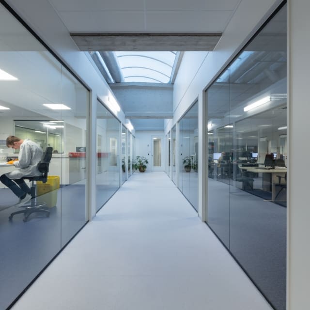 In the Eurofins lab in Nazareth, Clicwall is the order of the day. The AB Interieurs team installed over 1000 m² of Clicwall panels here.
