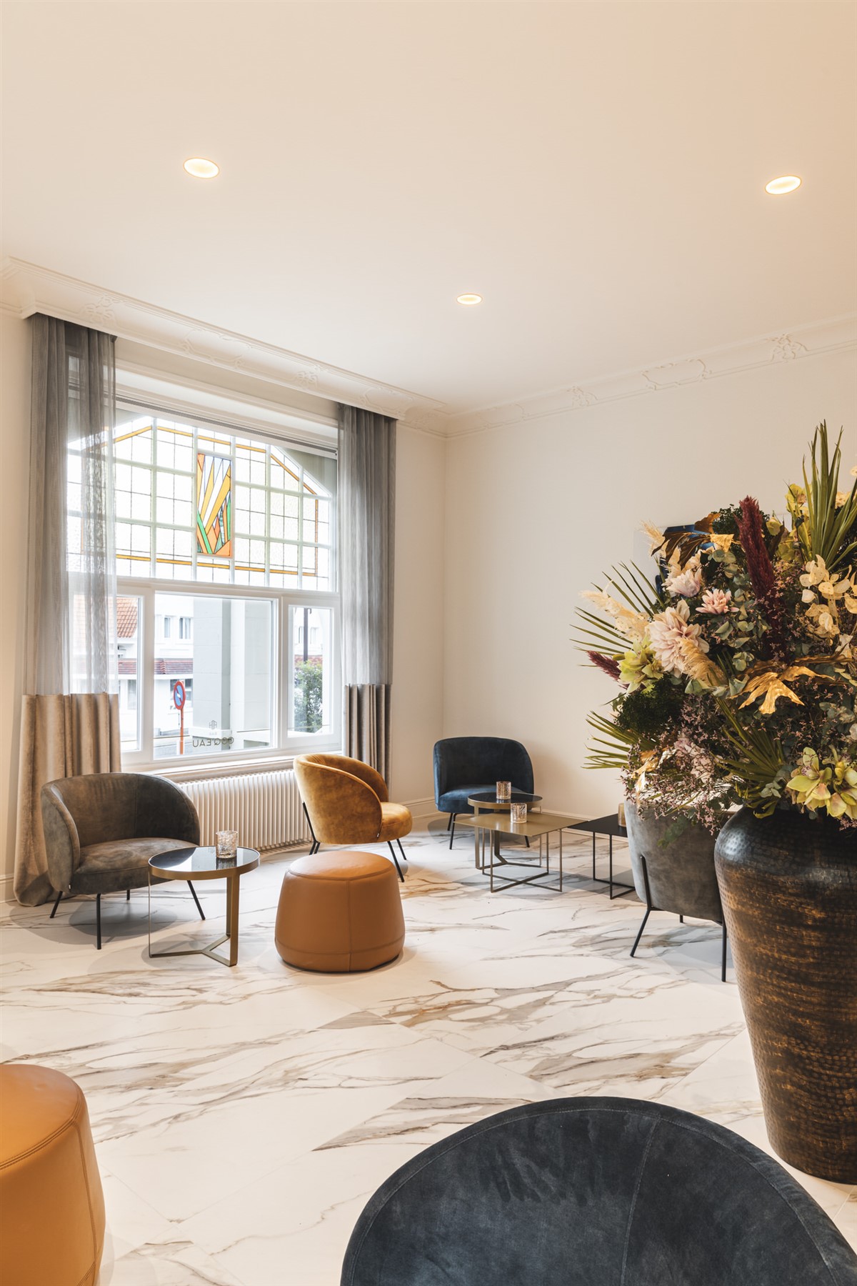 The interior was a challenge, since they wanted to continue the impressive grandeur of the outside to the inside, with attention to comfort and luxury in a contemporary jacket and with touches of the past, says Danny Hoorelbeke (Project Vijf).