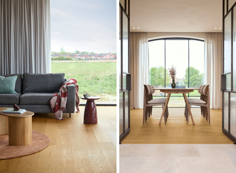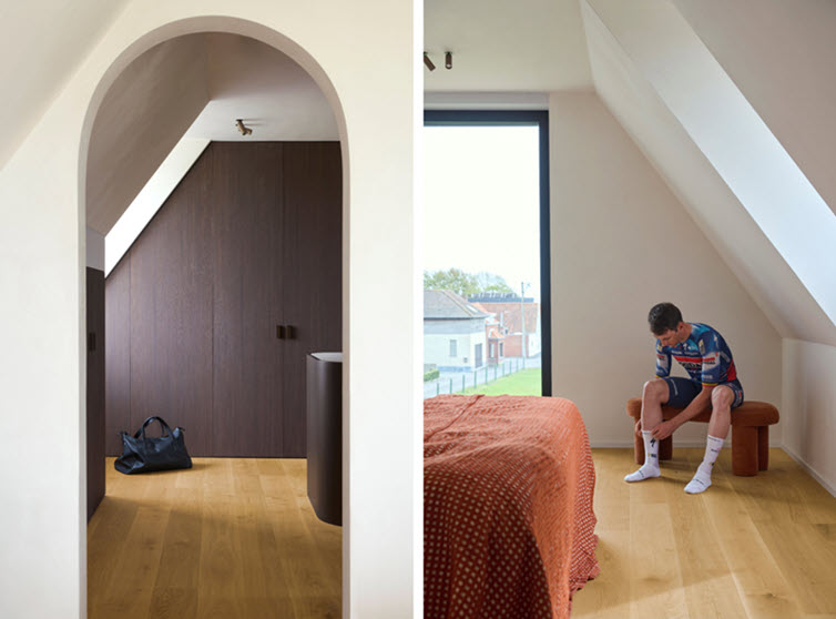 Les nombreuses nuances de bois font de cette maison « campagnarde contemporaine » un véritable cocon : chaleureux, intemporel et pratique. Car comme dans le cyclisme, l’efficacité est ici tout aussi importante que le style. Quick-Step et Master Oak sont non seulement esthétiques, mais aussi faciles à entretenir – un atout pour une jeune famille déjà bien occupée avec un enfant en bas âge… et désormais un deuxième venu agrandir le peloton.