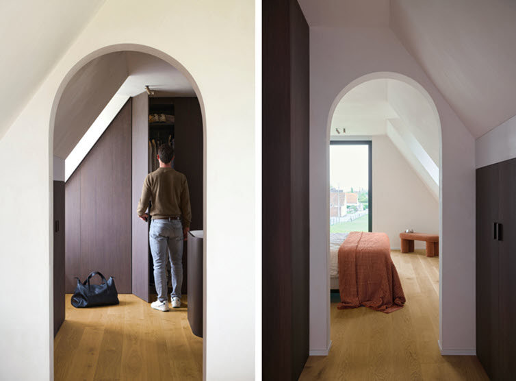 « Nous voulions une maison chaleureuse, avec beaucoup de bois et de matériaux naturels », explique Astrid, l’épouse d’Yves. Dans les pièces de vie, ils ont donc opté pour un parquet étanche Quick-Step, tandis que Master Oak brown apporte tout son caractère au dressing.