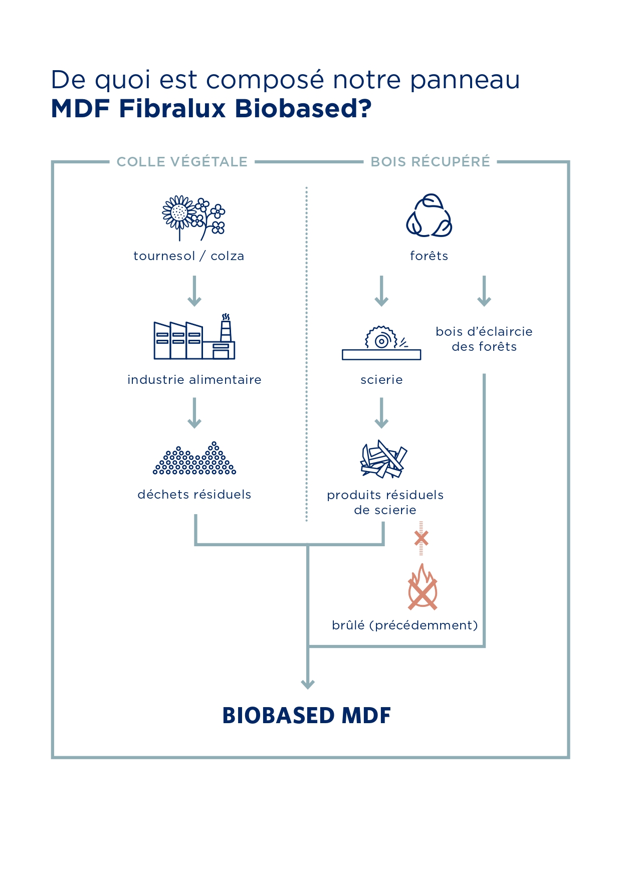 Vous souhaitez en savoir plus sur cette innovation durable ? Téléchargez la fiche technique et découvrez le MDF biosourcé.Le MDF biosourcé d'Unilin Panels est conçu pour l'avenir, sans compromis sur les performances. En utilisant des résines biosourcées et du bois récupéré, nous avons développé une alternative plus durable au MDF traditionnel. Même facilité d'utilisation, même qualité. Système de résine biosourcée