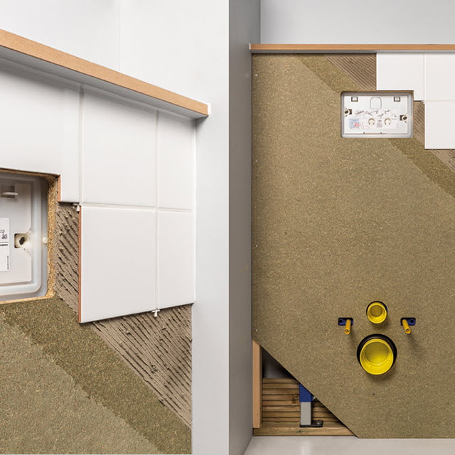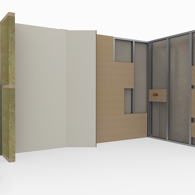 Les panneaux de renfort sans éclats apportent à votre cloison une capacité de charge élevée et une résistance aux chocs accrue. Les panneaux de finition clipsables simplifient la suite : vous travaillez jusqu'à quatre fois plus vite qu'avec du plâtre.