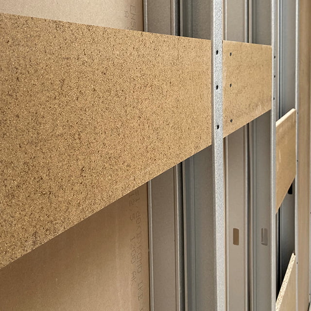 Avec Qualirack TG, vous choisissez un panneau de renfort à haute résistance à l’arrachement des vis, avec une capacité portante et une résistance aux chocs supérieures.