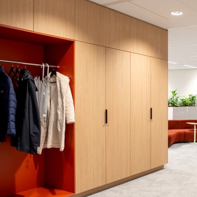 Elke dag een beetje thuiskomen op kantoor. Klinkt goed, toch? In het nieuwe hoofdkantoor van bouwbedrijf Van Wanrooij speelde Inbo Architect het klaar dankzij een grote vide die de afstand tussen de verschillende afdelingen verkleint. De eyecatcher? De kastenwand die doorloopt over drie verdiepingen en is afgewerkt met Master Oak Light Natural.